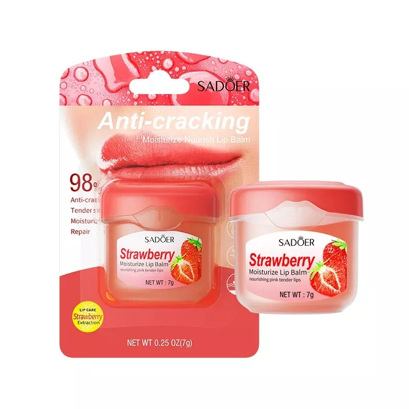 Fedezd fel a Sadoer Anti-Cracking Moisturize Nourish Lip Balm – Strawberry ajakápoló ápoló erejét! Ez a könnyed, mégis gazdag formulájú balzsam kifejezetten a száraz, repedezett ajkak regenerálására készült. A benne található természetes hidratáló összetevők mélyen táplálják az ajkakat, miközben megvédik őket a kiszáradástól és a környezeti hatásoktól.