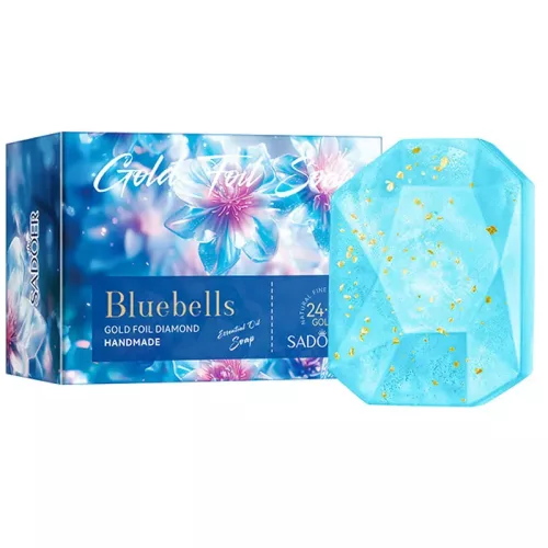 A gyönyörű, gyémánt formájú szappan különleges textúrája nemcsak esztétikai élményt nyújt, hanem kellemes, kényeztető habot is képez, amely minden fürdés vagy kézmosás során kényezteti érzékeit. A Sadoer Bluebells Gold Foil Diamond tökéletes ajándék minden alkalomra, vagy egy kis luxus a mindennapokban.