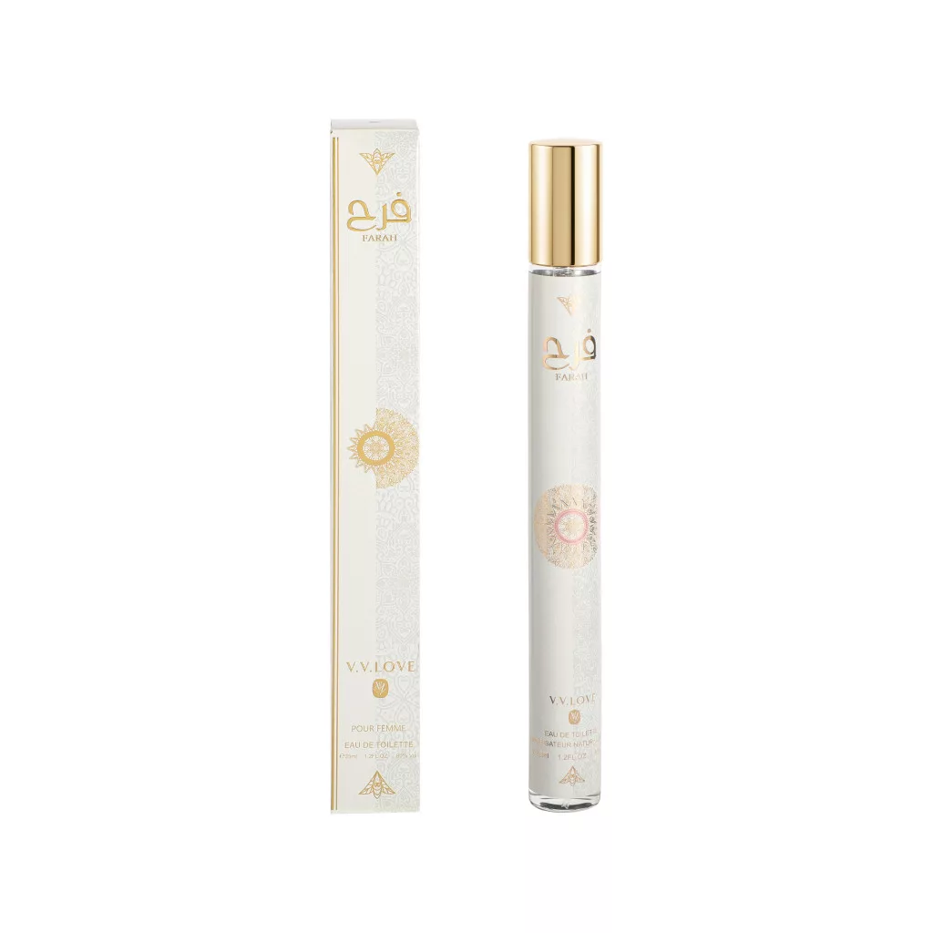 V.V. Love Parfume 35 ml (Farah) egy különleges, női arab tollparfüm, amely az érzékiség és az elegancia tökéletes harmóniáját testesíti meg. Az illat gazdag, mély és hosszan tartó, kifejezetten azoknak a nőknek készült, akik szeretik az orientális parfümök titokzatos, nőies világát.